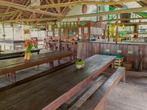 - The neighboring Indigenous community is involved in the eco-lodge project, with staff and guides from the village. Access to education and new health facilities are also among their many commitments.