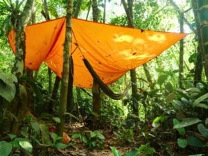 - Camping and bivouac equipment in the jungle.