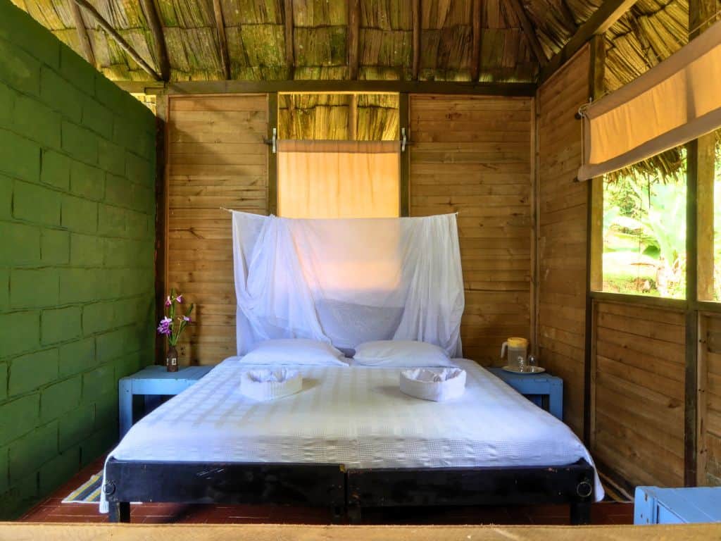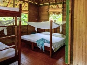 From your cabin, you can walk along the empty shoreline, go chasing waterfalls, try your hand at fishing—whether local-style or sport fishing—check out the Ruta del Viche, or even learn to surf. Depending on the season, you might spot whales, watch baby turtles head into the ocean, or take a trip up the Rio Jovi.