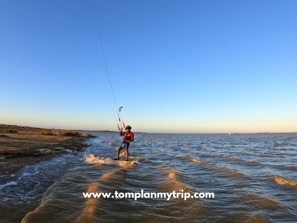 🪁 The only kitesurfing spot is where the schools are (yes, just a few meters from your bed). You will find a large area of flat and shallow water. There are many kitesurfers simultaneously, and it’s a bit like the Wild West of kitesurfing (priority and safety rules are less respected).