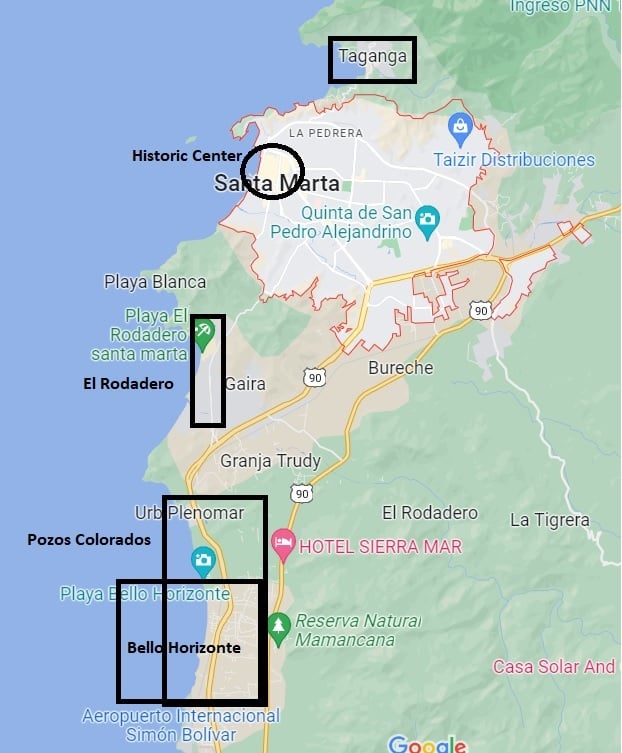 Are you in a rush? Here is a quick summary to quickly find the right Santa Marta district.