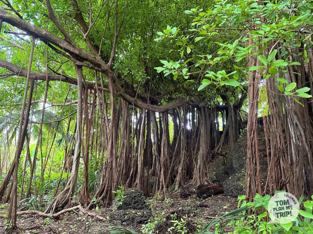 Les arbres de l’île sont des célébrités à part entière. El Arbol que Camina (un ficus impressionnant) s’étend sur plus de 1000 mètres carrés, tandis que Ceiba Bonga domine l’île, offrant une ombre impressionnante. Et il y a aussi le tun-tun—on dit que tu peux entendre les battements d’un cœur si tu approches ton oreille de son tronc.