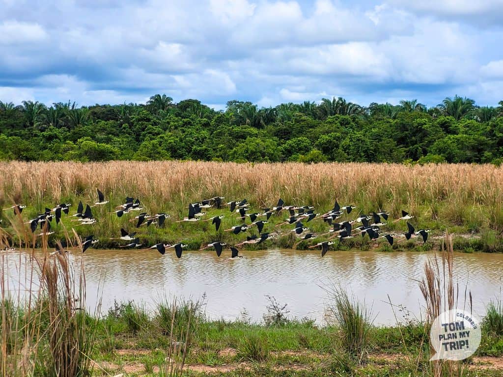 Les Llanos se distinguent par leurs grands groupes d’oiseaux spectaculaires comme les ibis, cigognes, skimmers noirs, hoatzins, pluviers, spatules, canards siffleurs et oies de l’Orénoque. Ces rassemblements offrent des opportunités uniques de photographie. Les observateurs plus expérimentés trouveront des espèces rares comme les manakins à queue de fil, les kamichis cornus, les hocco alector, les chouettes à lunettes, les jacamars, les tamatias, et les sunbitterns aux motifs d’ailes impressionnants.